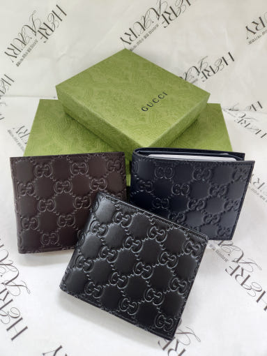 구찌 인터로킹 투톤 마이크로시마 남자 반지갑은 고급스러운 마이크로시마 가죽 소재를 사용했습니다.